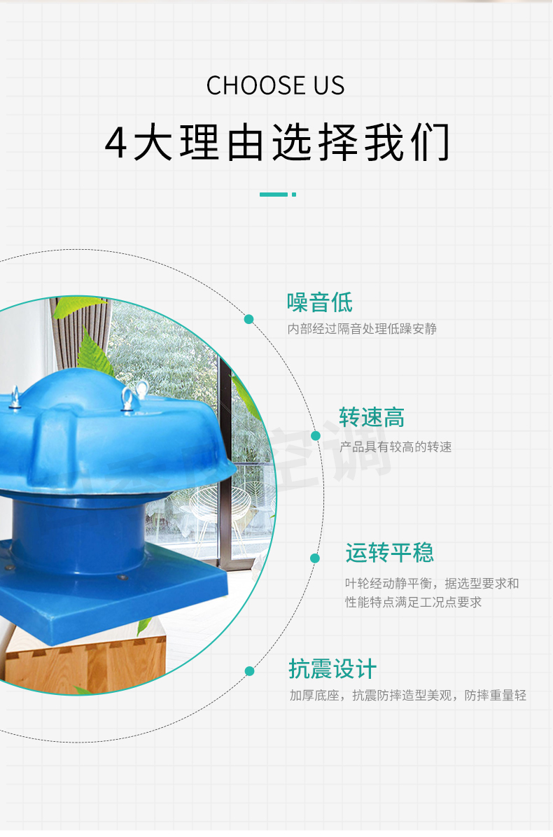 靖江市四季風(fēng)空調(diào)設(shè)備有限公司——DWT系列軸流式屋頂風(fēng)機(jī)分為二大類型,其一,軸流式屋頂風(fēng)機(jī):型號(hào)為DWT-II型、DWT-III型二種形式,宜適用于風(fēng)量較小而壓力要求較高的場(chǎng)合。